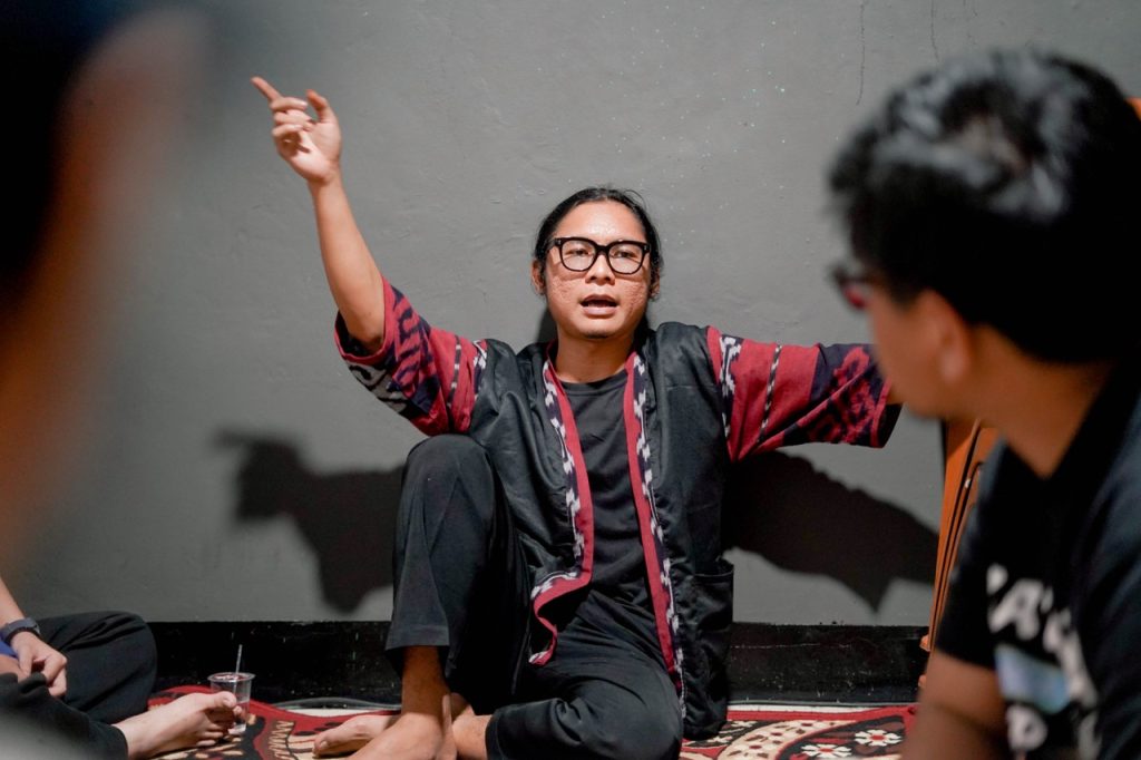 “Di negara kita. Tradisi, budaya dan kesenian masih selalu dikesampingkan. Berbeda di negara-negara yang pernah gue kunjungi, contohnya korea selatan yang terdekat dari kita. Mereka sudah punya jadwal dan punya plotnya masing-masing untuk berkesenian, ruang-ruang nya jelas gitu.”